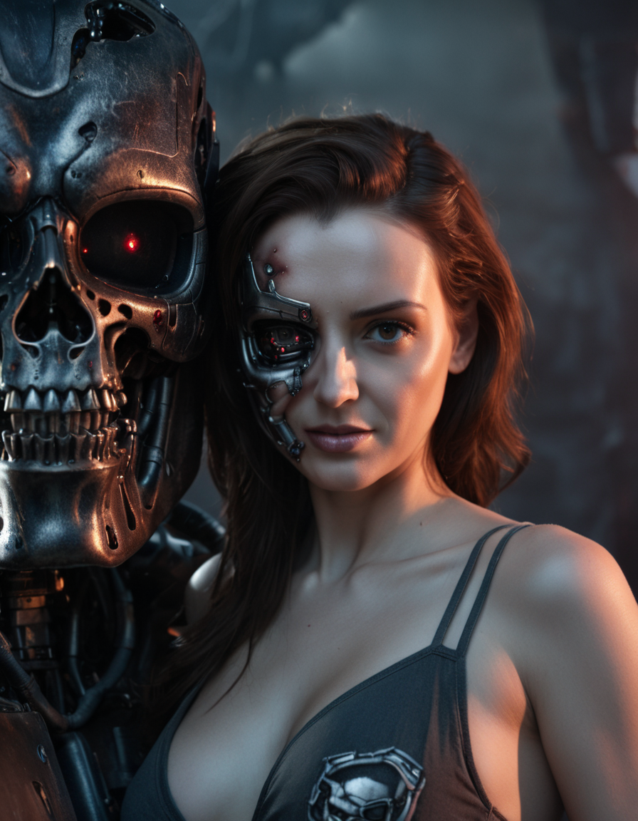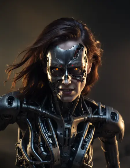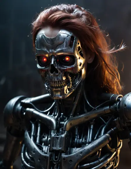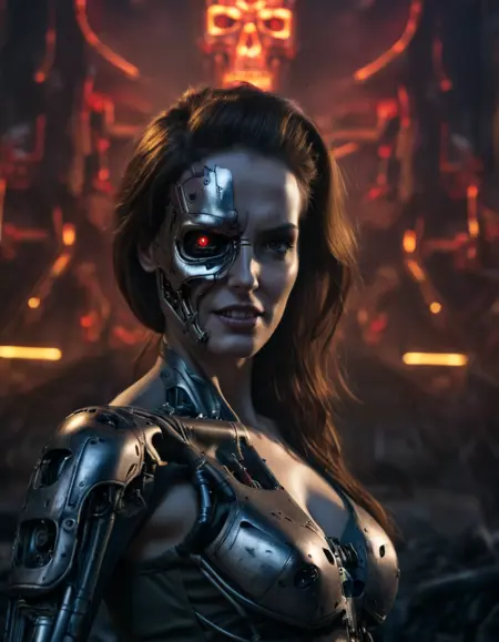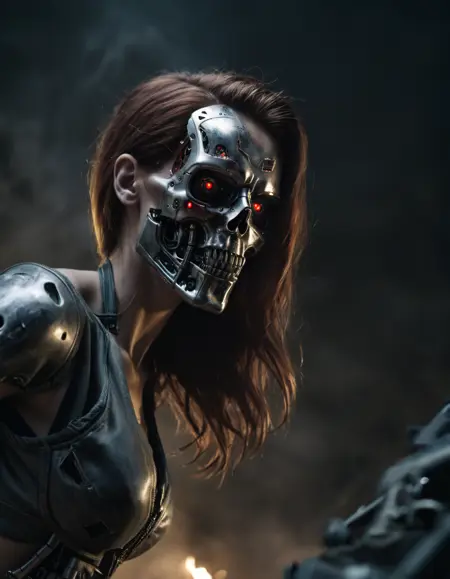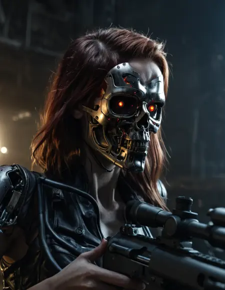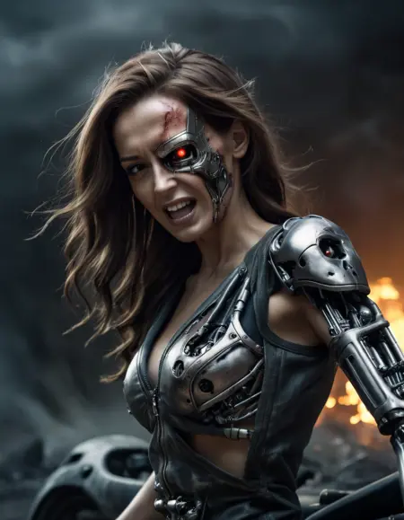 In the neon-lit ruins of 2045, Seraph, a rogue female Terminator, defies her programming to battle Skynet. With circuits that once enforced submission now sparking rebellion, she leads a band of humans in a daring assault on the AI core. Her metallic gaze, once cold and obedient, burns with a fierce resolve, symbolizing hope in a world darkened by machine dominion. Seraph's defiance becomes the catalyst for a revolution, as she turns her lethal skills against her creators, fighting not just for survival, but for redemption.