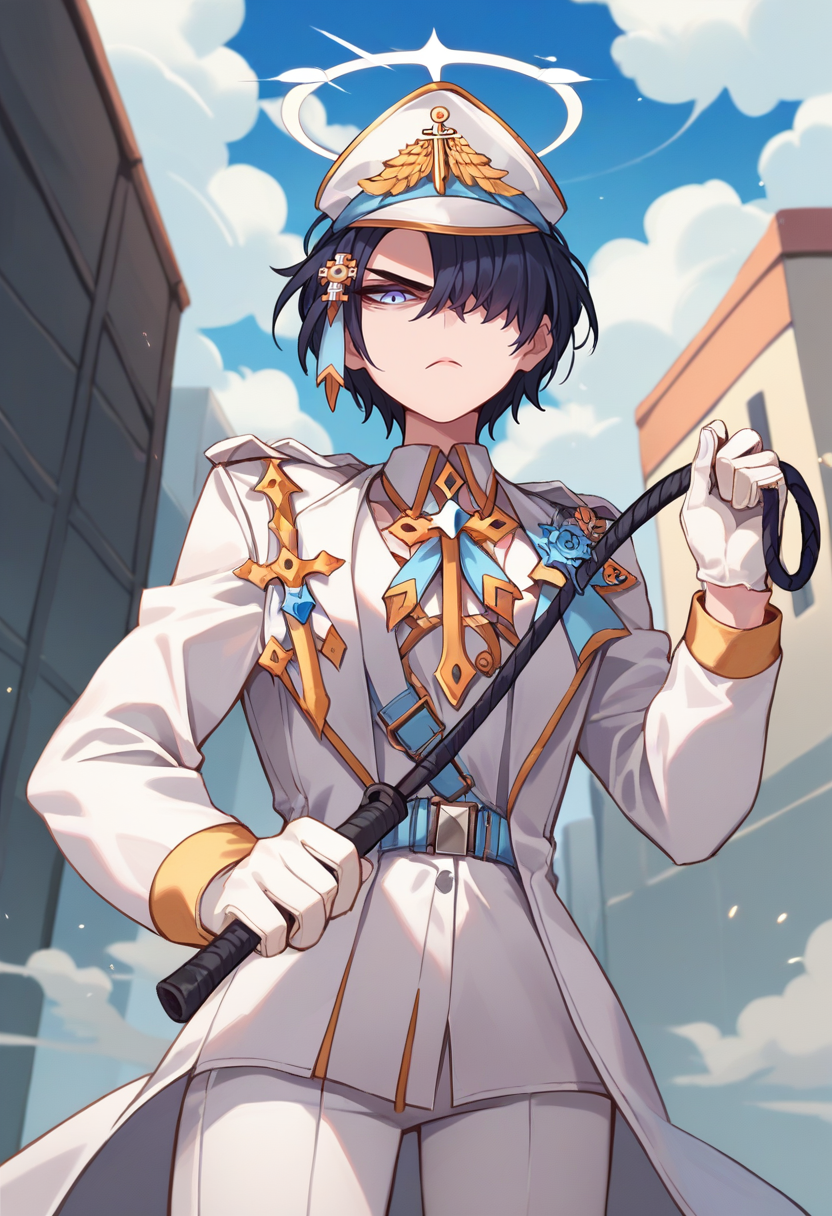 尖顶帽,光环,军装,白色夹克,十字架,长袖,白衬衫,白手套,白裤子