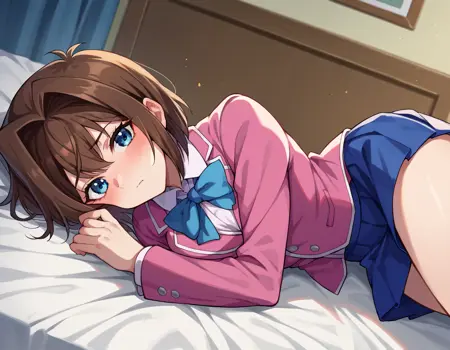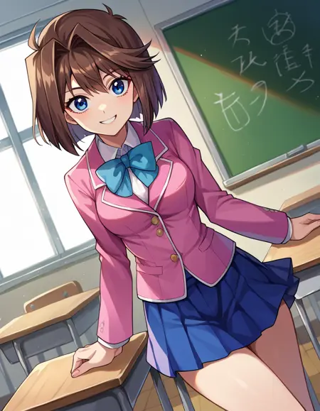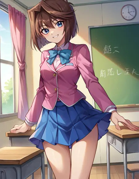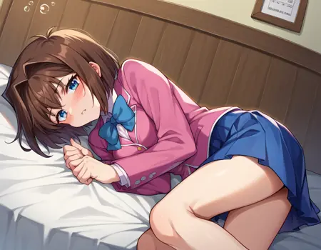 blazer, blue skirt, domino high school uniform, jacket, miniskirt, pink shirt, school uniform, shirt, skirt,