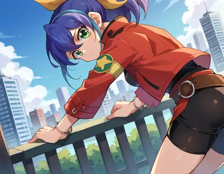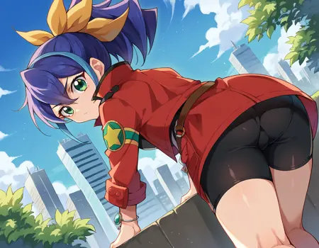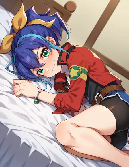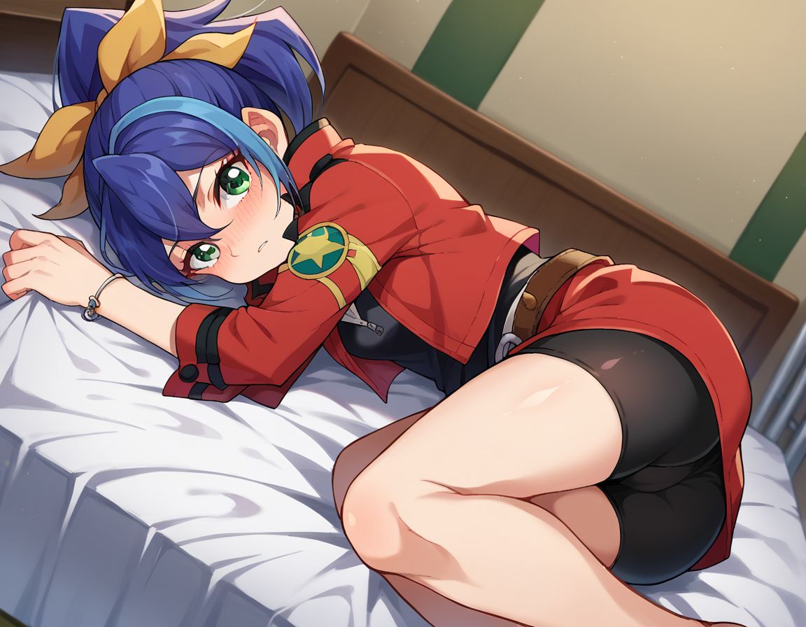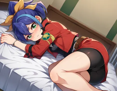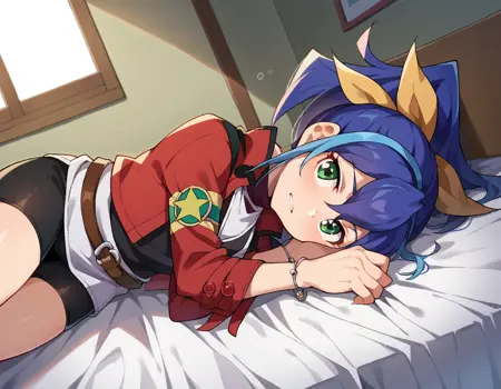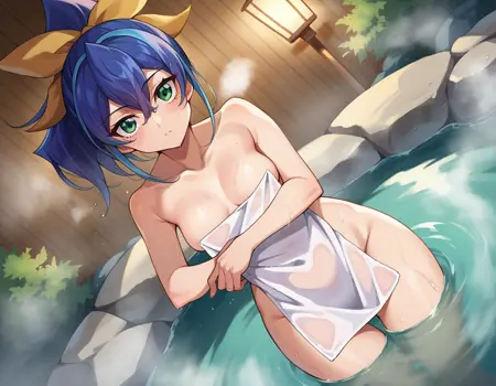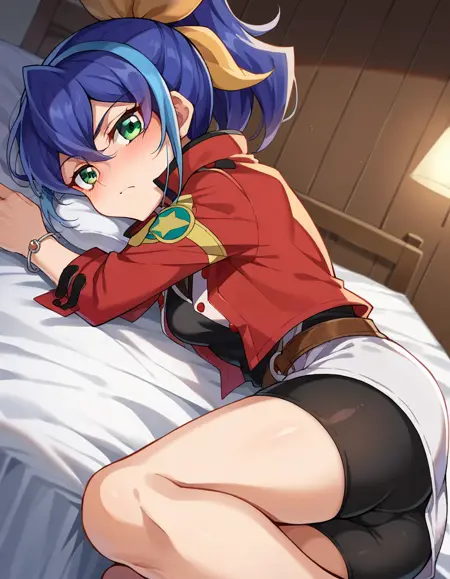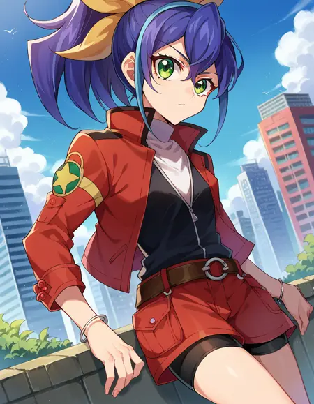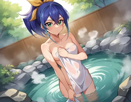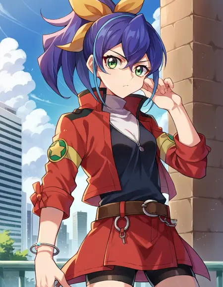 yugioh serena, 青い髪, 多色の髪, ポニーテール, 二色髪, 緑の目, 髪のリボン, リボン,