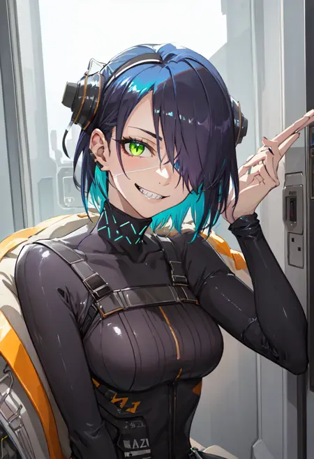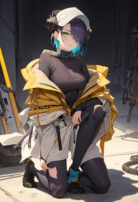 触发词为 asbestos_arknights,精简标签为 short_hair, multicolored_hair, green_eyes, hat, blue_hair, two-tone_hair, baseball_cap, eyepatch, hair_over_one_eye, headphones, black_hair, tail, lizard_tail, breasts, purple_hair, white_headwear。当某些特征(如发色)有时不够稳定时,您可将这些标签添加到提示词中。