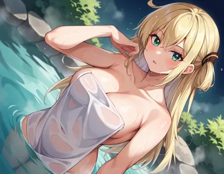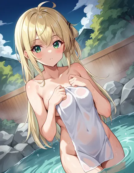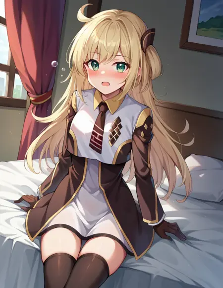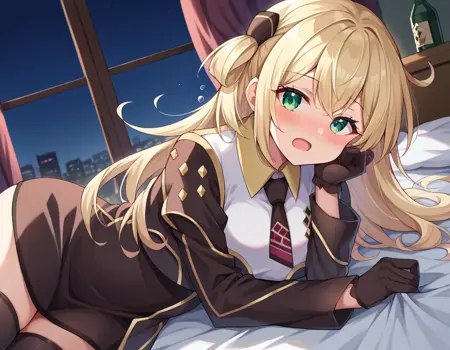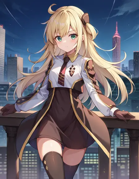 sky striker ace raye, blonde hair, green eyes, long hair, one side up,