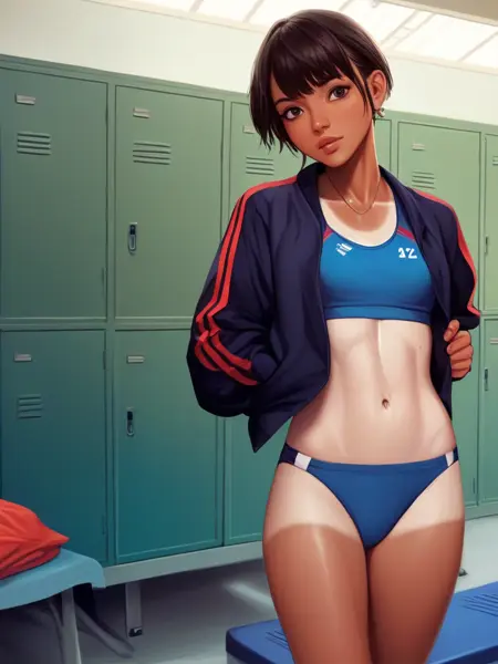 Track and field uniform Lora. trained with animeConfettiComrade_v3.
