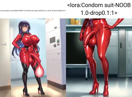A Pony based LyCORIS to generate the concept Condom Suit. Use triggerwords to control the size of condom suit. The size words also work but I didn't test them.