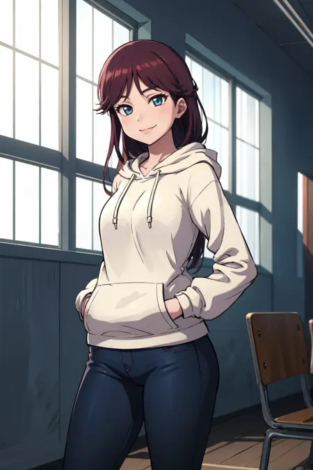 ErenaTodo, long hair, white blazer, striped necktie, white skirt, pleated skirt, kneehighs, loafers