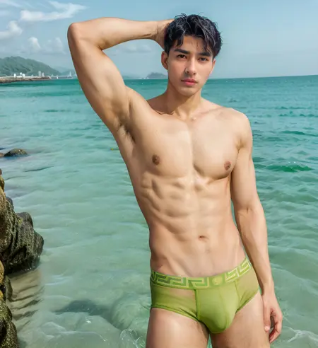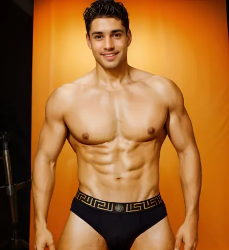 Prompt is as simple as "a man in a black vrsc briefs", no photorealistic, no ultra HD, none of that