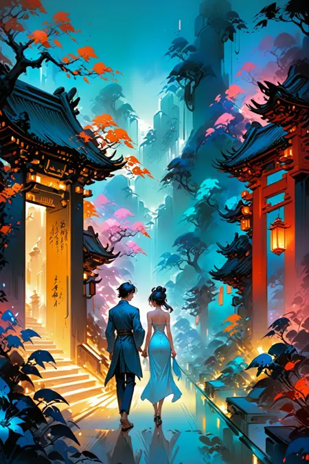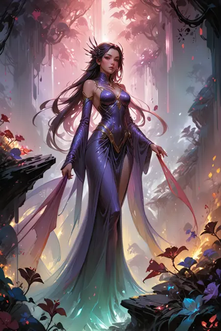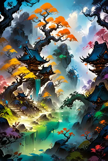 An anime-ish digital painting style that's slightly reminiscent of sumi-e. Works well for Japanese fantasy settings.