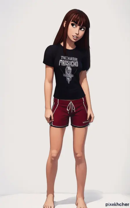 For her Outfit: shorts, shirt, t-shirt, red shorts, print shirt, black shirt, clothes writing**