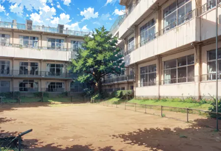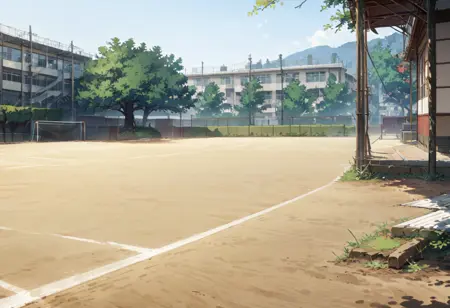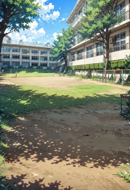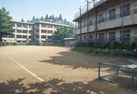 This is LoRA, which could depict a landscape like a Japanese schoolyard. これは日本の学校の校庭みたいな風景が描けるかもしれないLoRAです。