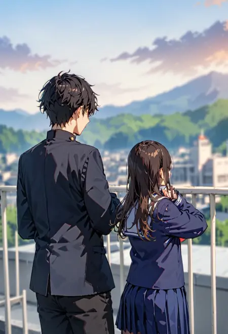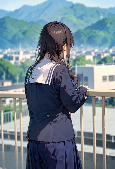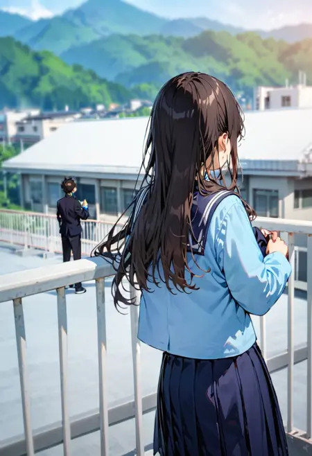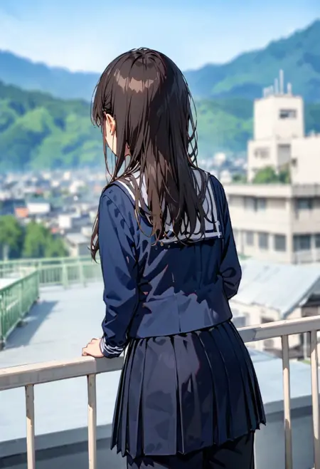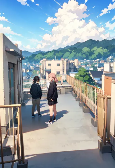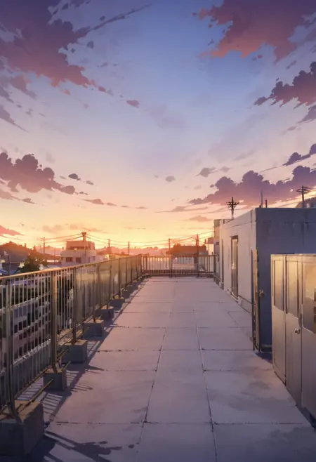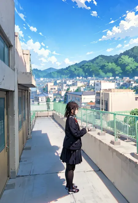 这是一个可能描绘出类似日本学校屋顶风景的LoRA。