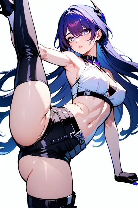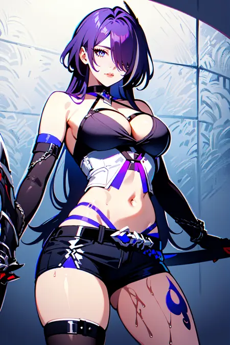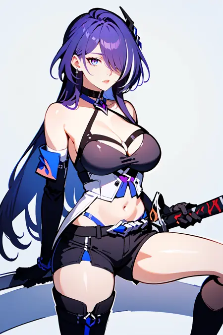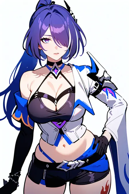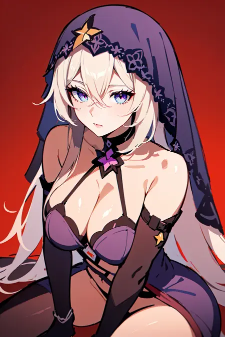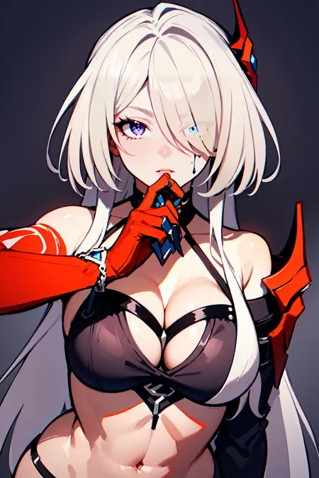 如果你添加 “acheron_(honkai: star_rail)”,则会更倾向于蓝色版本,该版本包含服装,因此红色版本会使用其白色服装(若添加 “black clothes” 可解决此问题)。