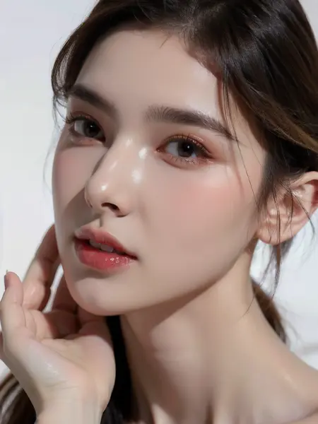 美妆:可在正向提示词中添加“特写”等词汇,并调整分辨率,生成面部细节的精细修图图;