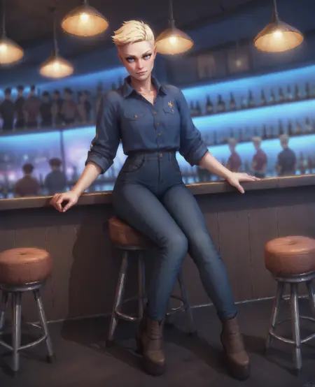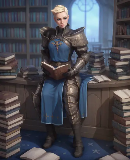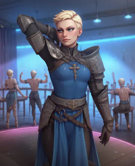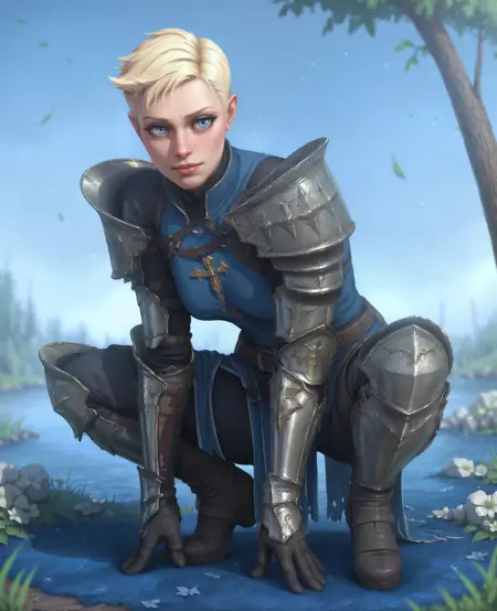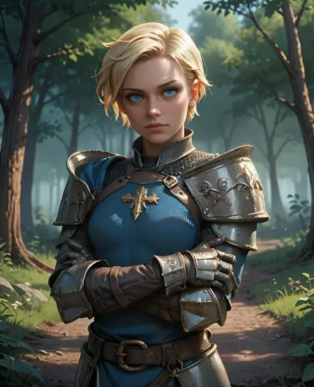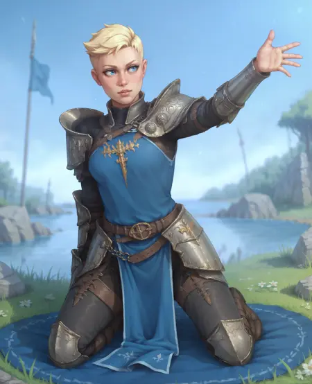 트리거: Athel, 1girl, 단발, 금발, 파란 눈