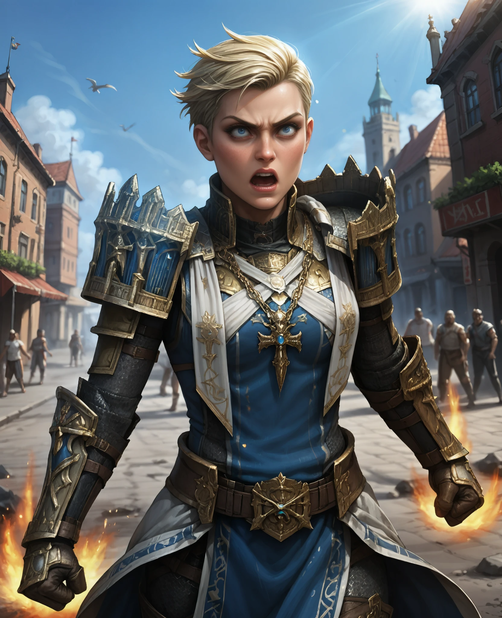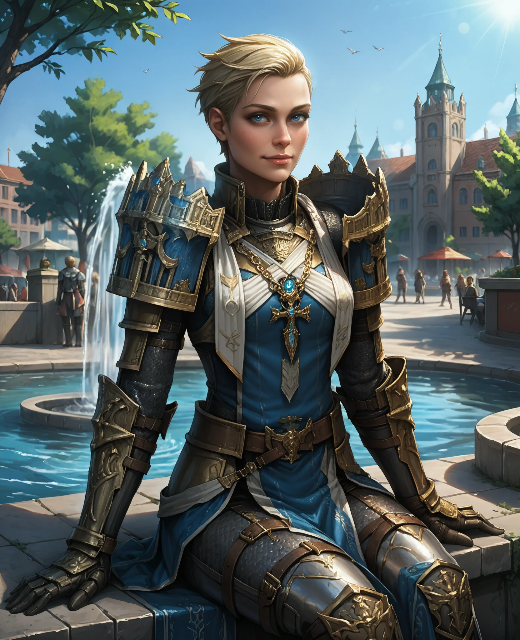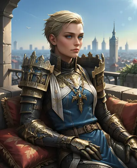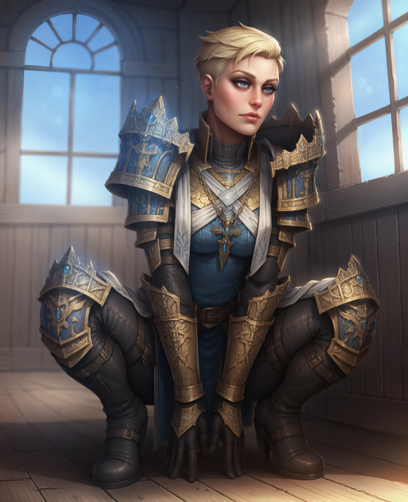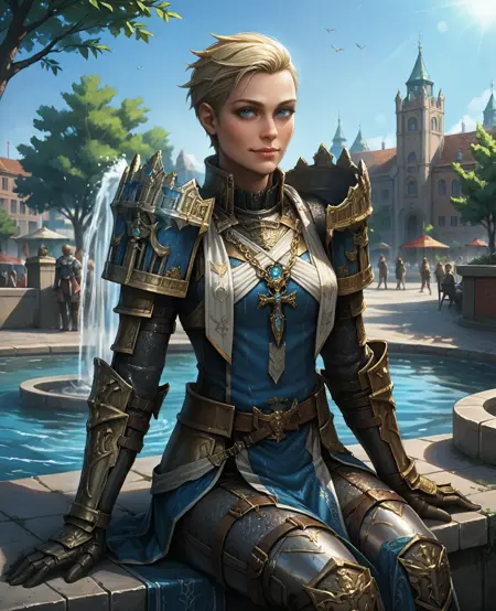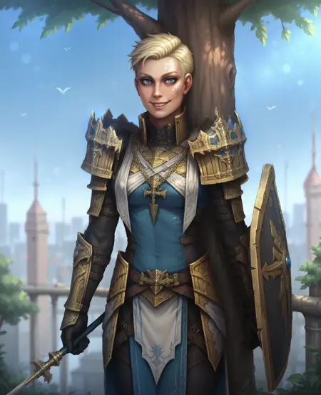 트리거: Athel, 1girl, 단발, 금발, 파란 눈