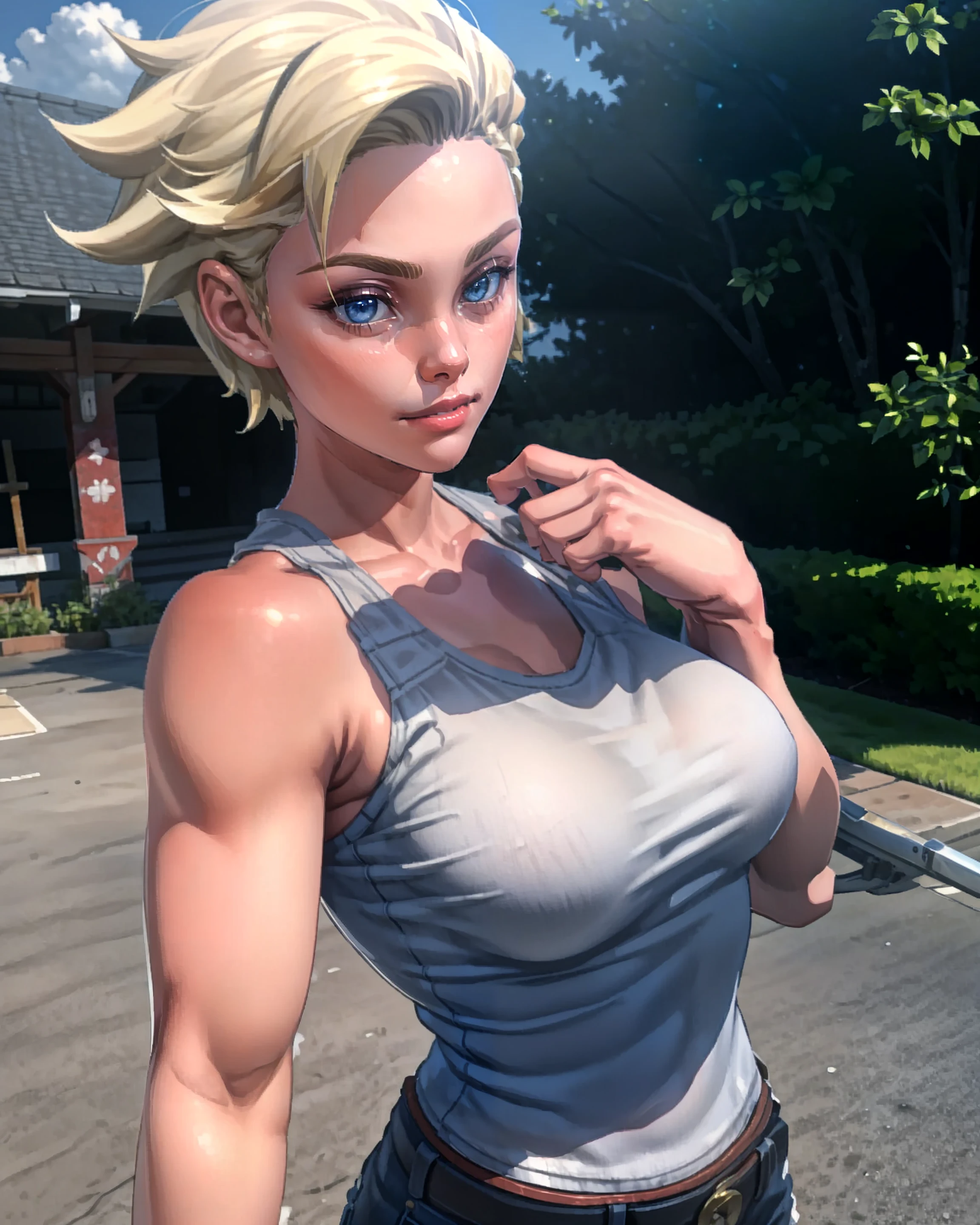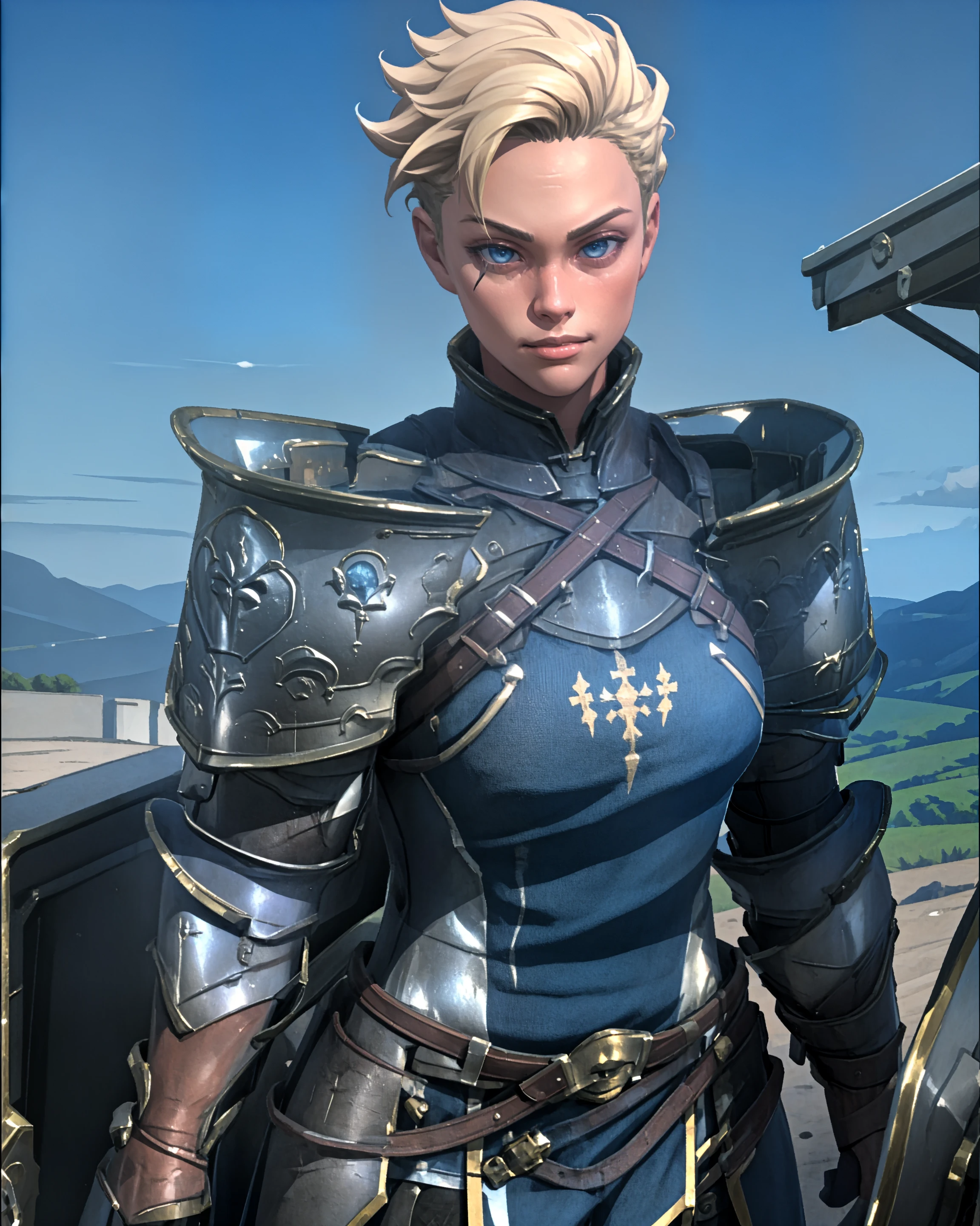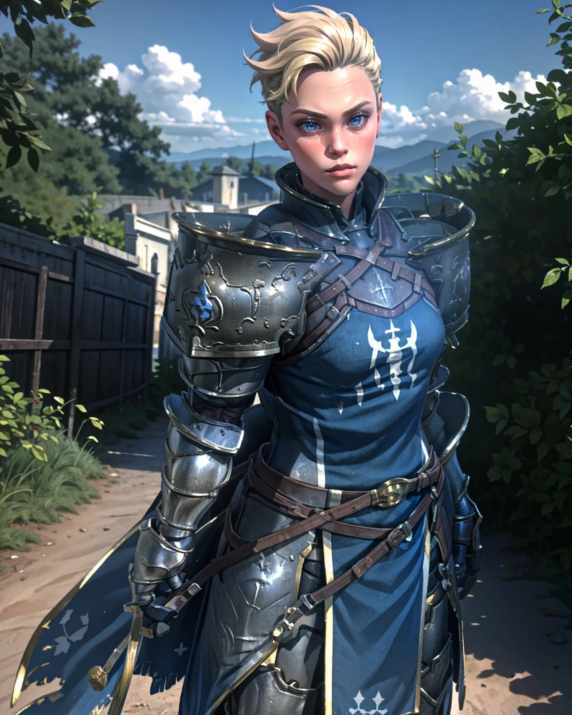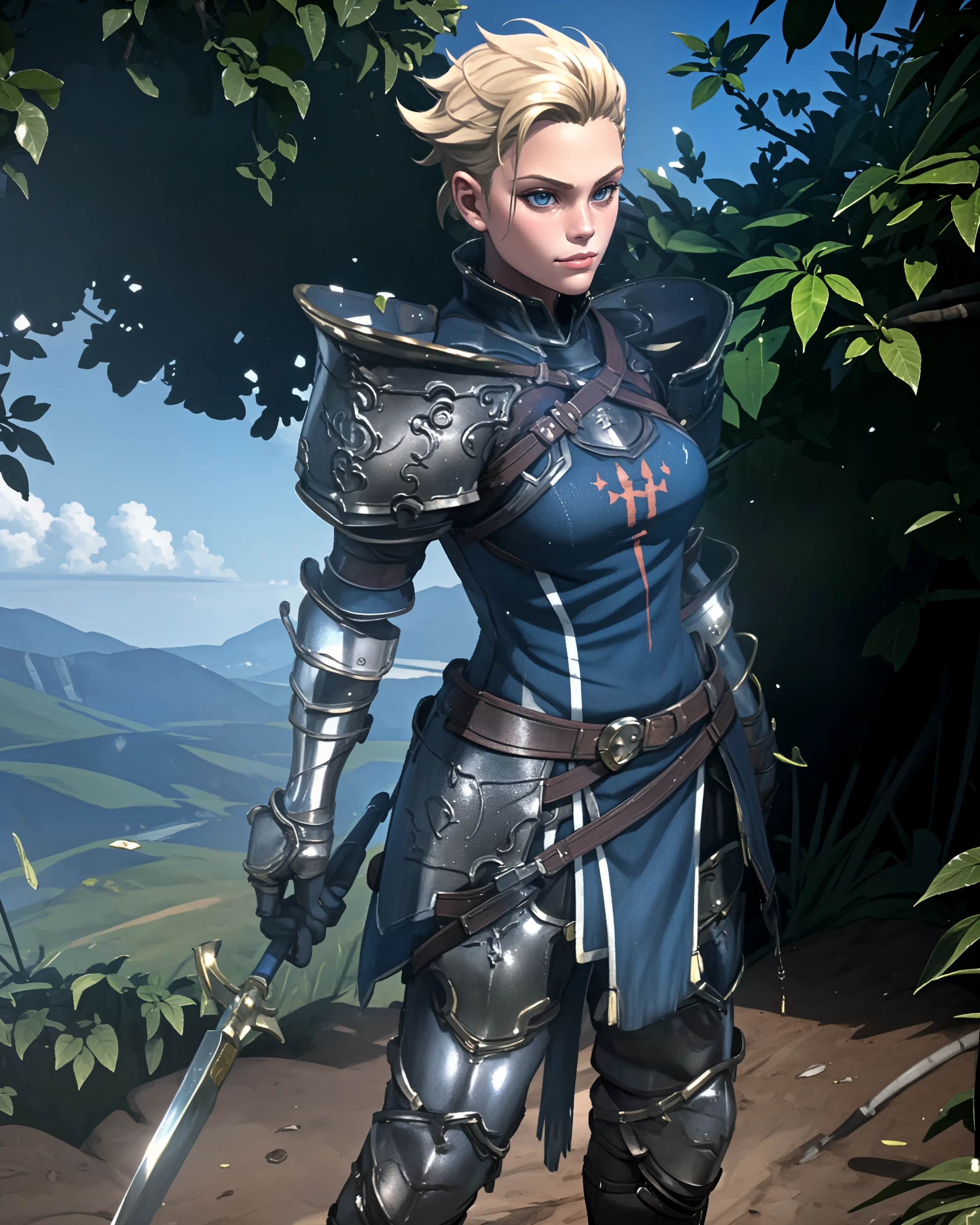 트리거: Athel, 1girl, 단발, 금발, 파란 눈