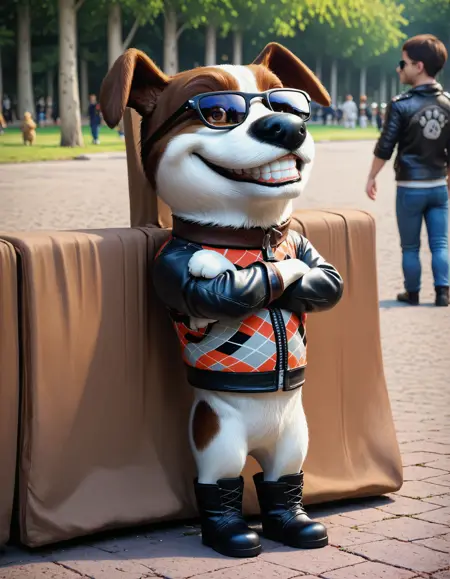 "solo, PipDawg, dog, animal, no humans, sleeveless, sleeveless shirt, red shirt, chibi, fur pattern, realistic,"