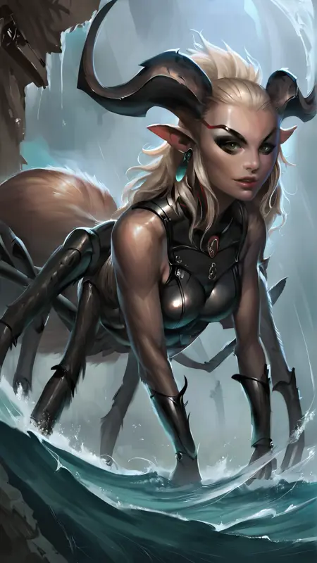 这是一个用于创建蛛形类生物的模型,包括雄性、雌性及怪物。皮肤和毛发颜色可自定义。请参考示例图片中的示例提示。