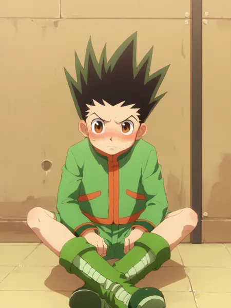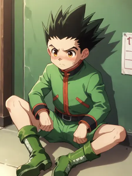 "1 boy, Gon Freecss, HxH, 1boy, male focus, spiked hair, black hair, green hair"