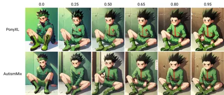 このモデルには、PonyよりもAutismMixを強く推奨します。Ponyを使っている場合、選り好みが必要になる可能性があります。また、他のスタイルLoRAと組み合わせて使用することも推奨します。