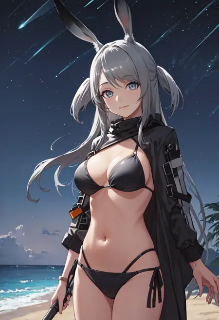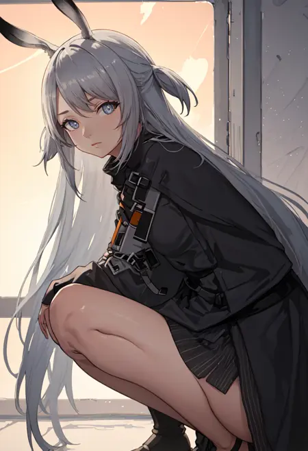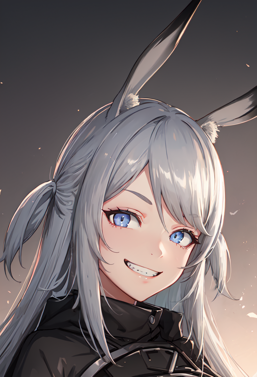 触发词为 savage_arknights,裁剪标签为 animal_ears, rabbit_ears, long_hair, grey_hair, breasts, grey_eyes, two_side_up, large_breasts, very_long_hair。当某些特征(例如发色)在某些情况下不够稳定时,您可以将这些标签添加到提示词中。
