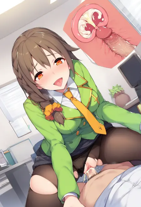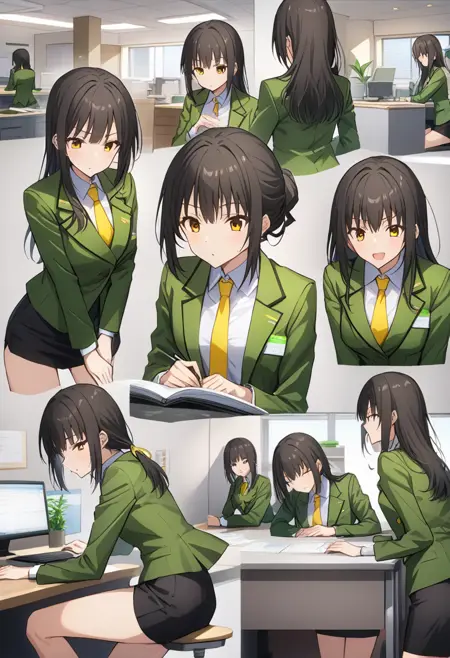 cosChihhi, 緑のジャケット, 黄色いネクタイ, 黒い鉛筆スカート,