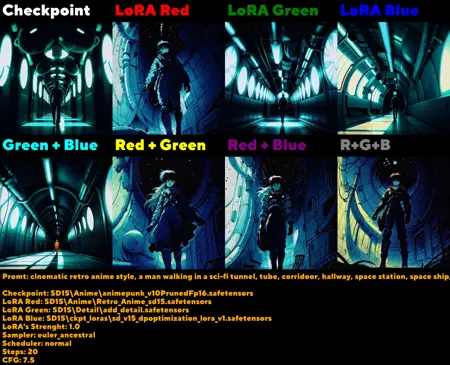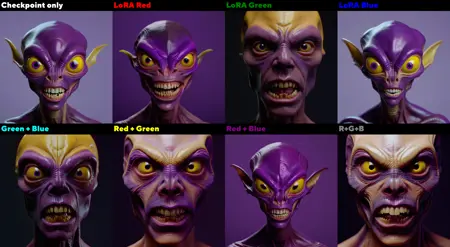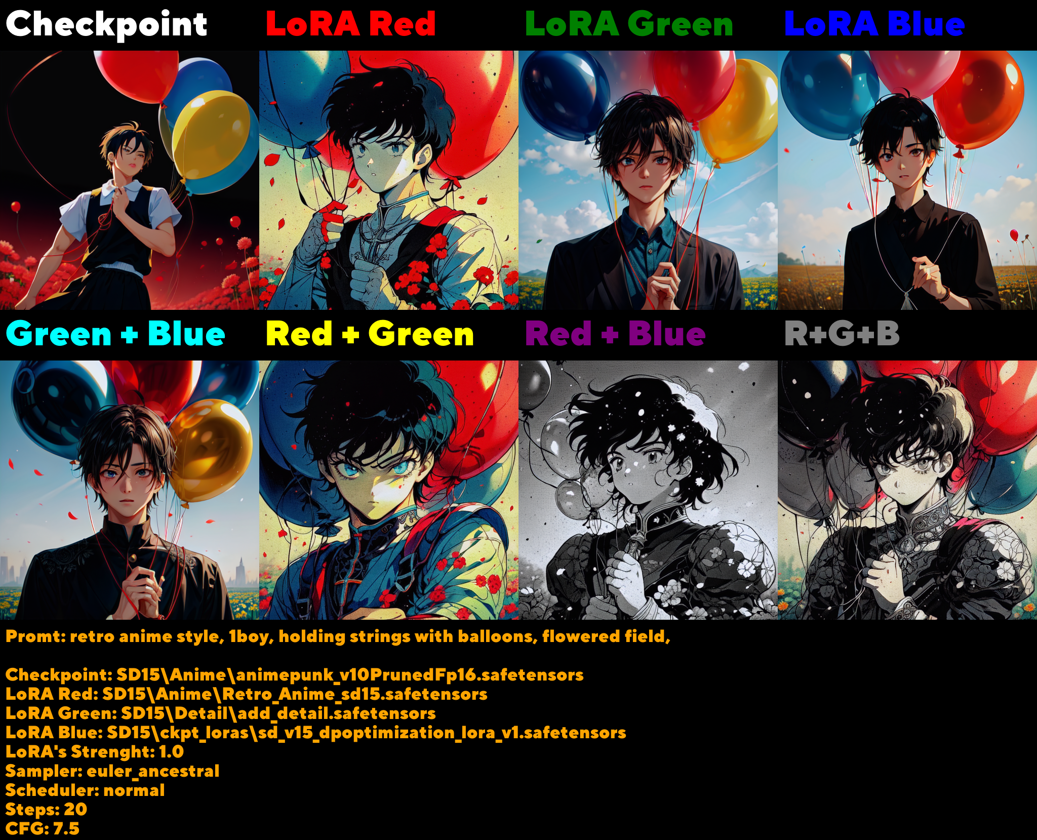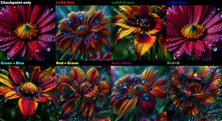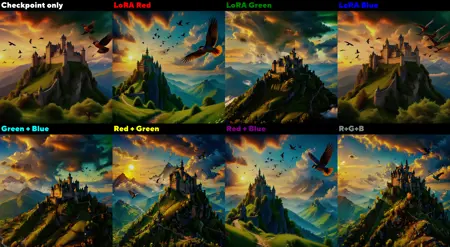• R G B로 3개의 LoRA를 선택하여 적응적으로 혼합할 수 있습니다