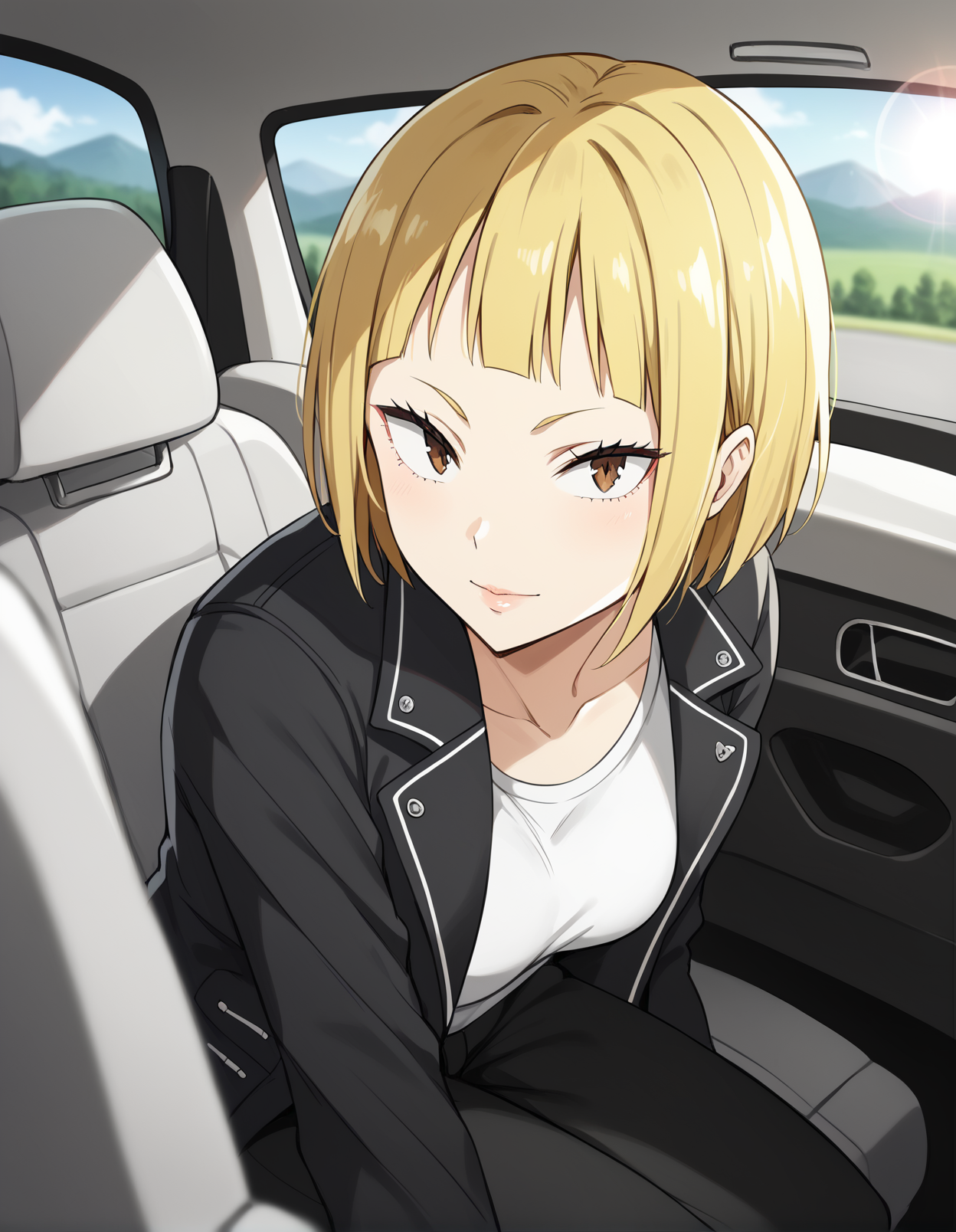 트리거 단어: tanaka saeko \(haikyuu!!\), 1girl, blonde hair, short hair, blunt bangs, brown eyes