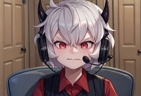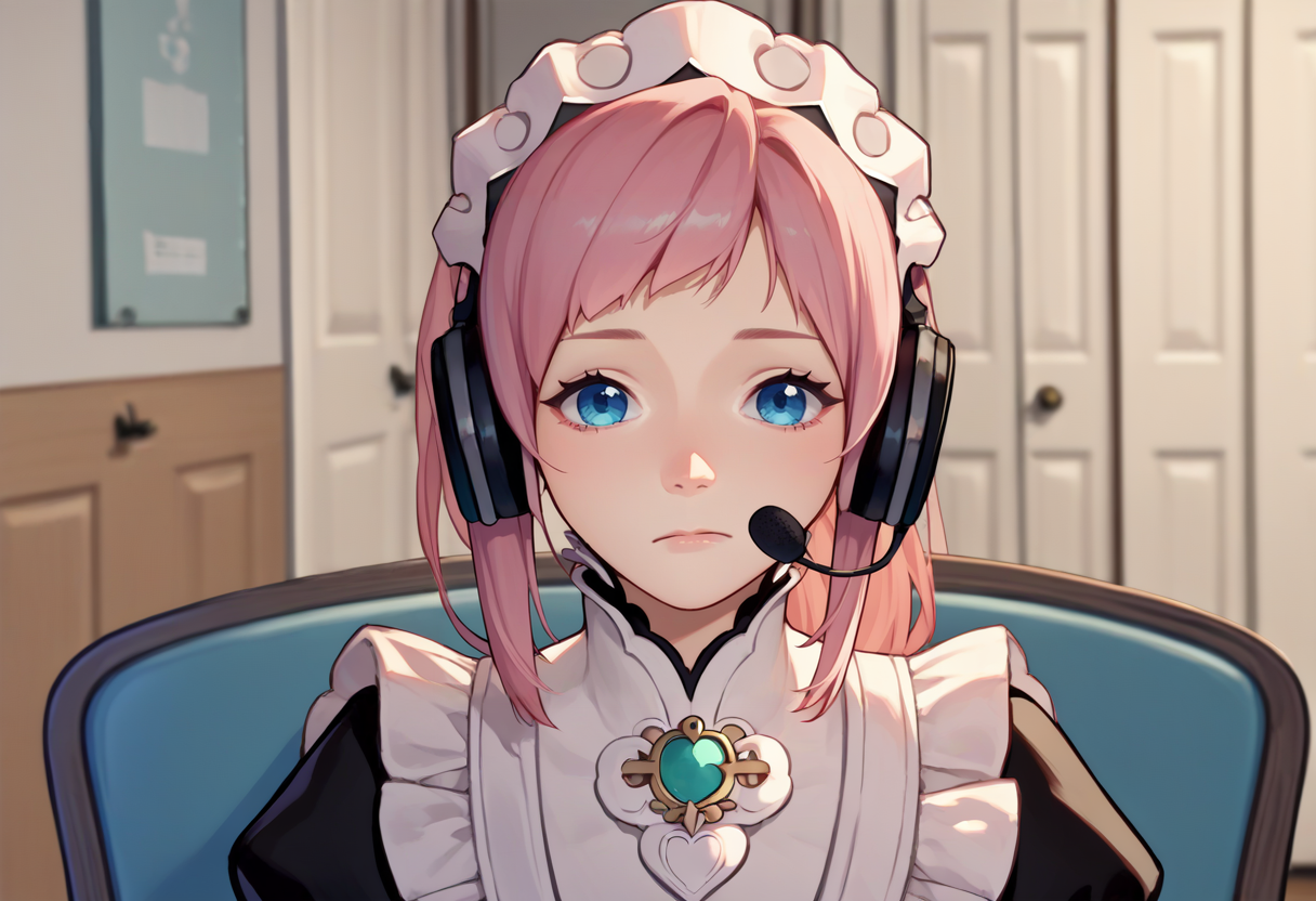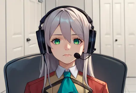 触发词 + 额外标签: sadlinus, headset, chair, indoors