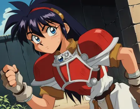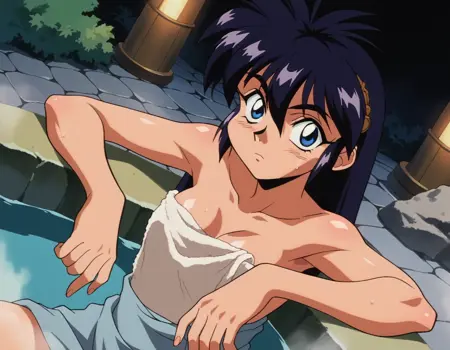 ihrie,长发,蓝眼睛,黑发,复古艺术风格,1990年代 \(风格\),