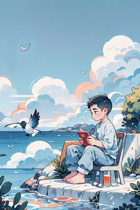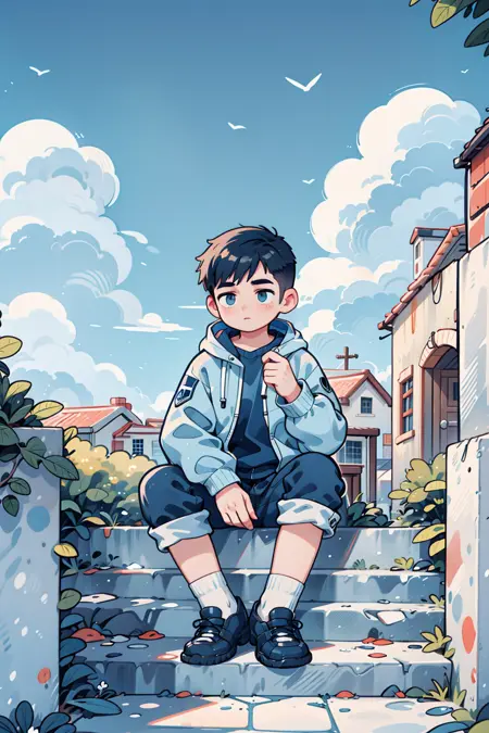kk-boy | 短发少年扁平绘画风格