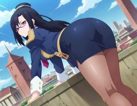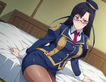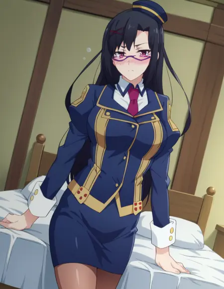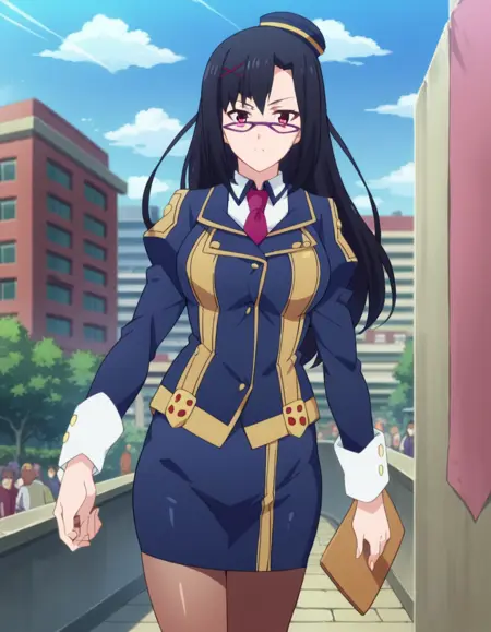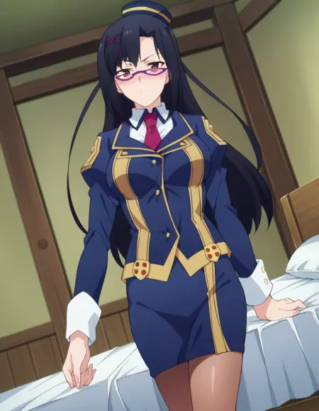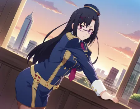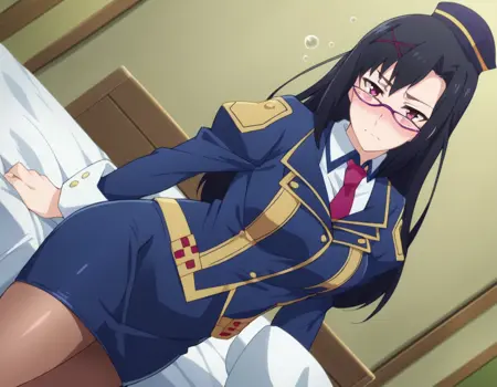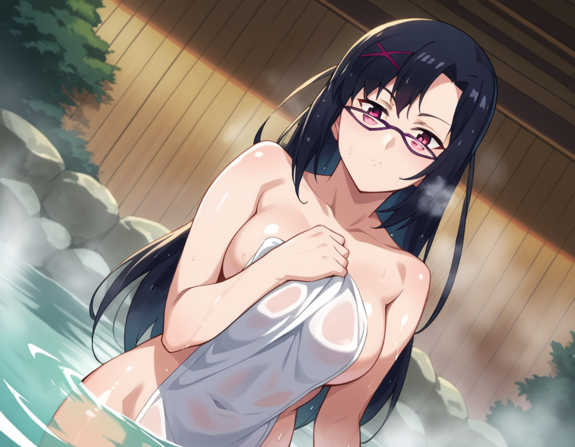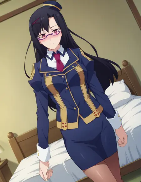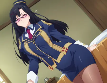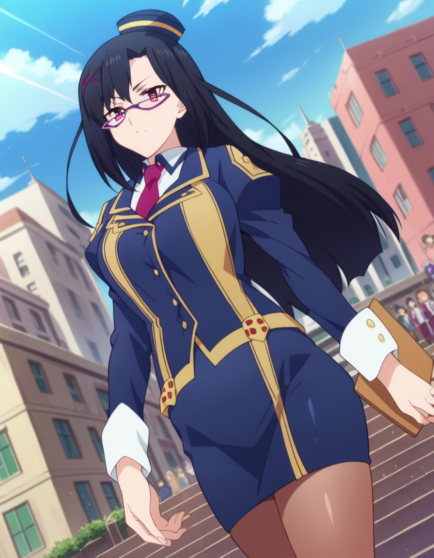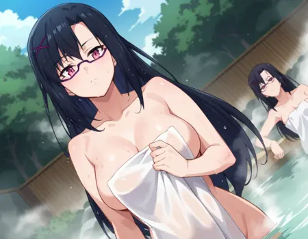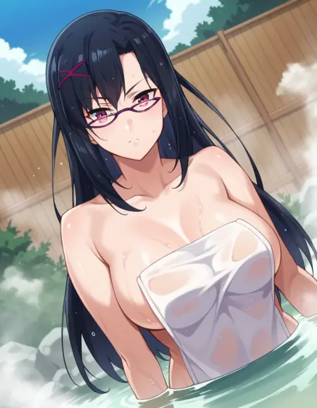 sena, 長い髪, 黒髪, 髪飾り, 眼鏡, 紫枠の眼鏡, 紫色の目,