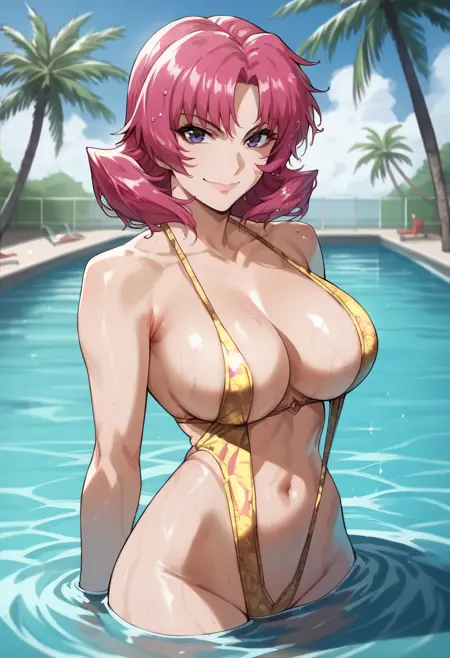 粉发,短发,紫眼,大胸部