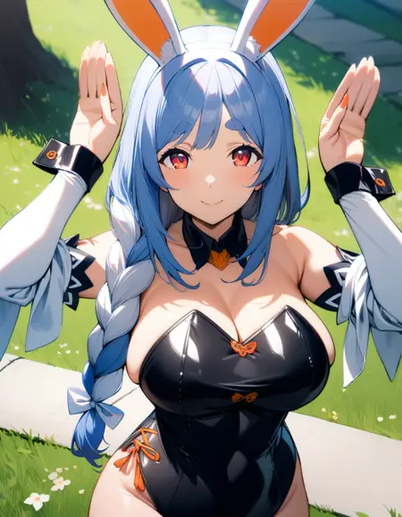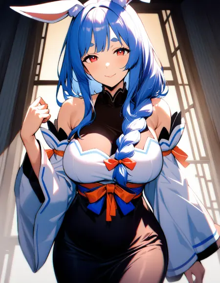 1girl, pekomama, solo, long hair, smile, mature female, red eyes, (very aethetic, best quality, ultra detailed), intricate details.