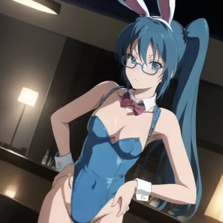 1. 1girl, blue hair, hatsune miku, medium breasts, petite, pig tails, blue eyes,