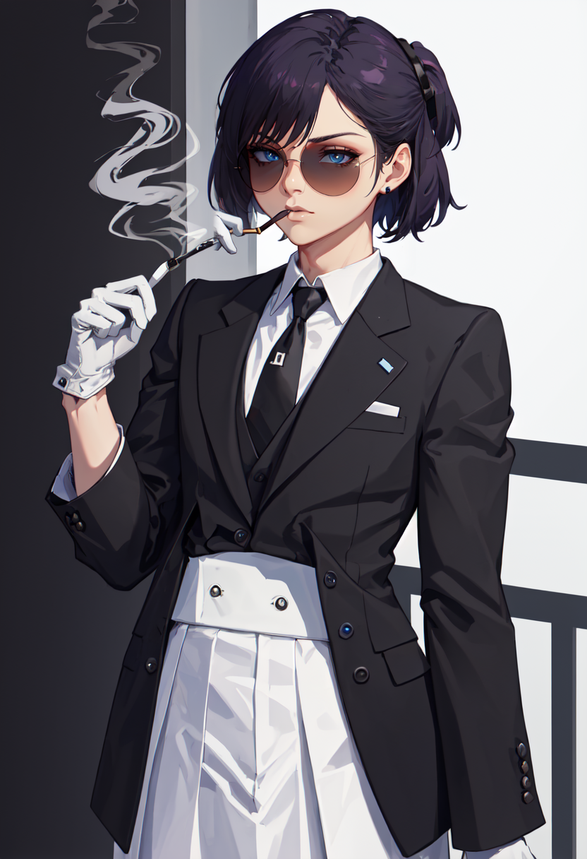 • 축소된 캐릭터 태그는 짧은 머리카락, 머리에 안경, 파란 눈, 보라색 머리카락입니다. 캐릭터의 핵심 특징(예: 머리 색상)이 안정적이지 않을 때 이 태그를 프롬프트에 추가할 수 있습니다.