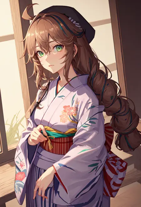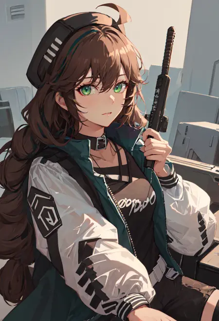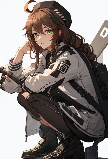 触发词为 cuora_arknights,裁剪标签为 long_hair, brown_hair, green_eyes, hat, ahoge, black_headwear, braid, hair_between_eyes, multicolored_hair, twin_braids, streaked_hair, breasts, beret。当某些特征(如发色)有时不稳定时,您可以在提示词中添加这些标签。