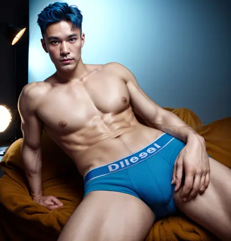 프롬프트는 단순히 "검정색 dslund 속옷을 입은 남자"이며, 사진처럼 사실적인 표현이나 초고화질 같은 것은 사용하지 않습니다