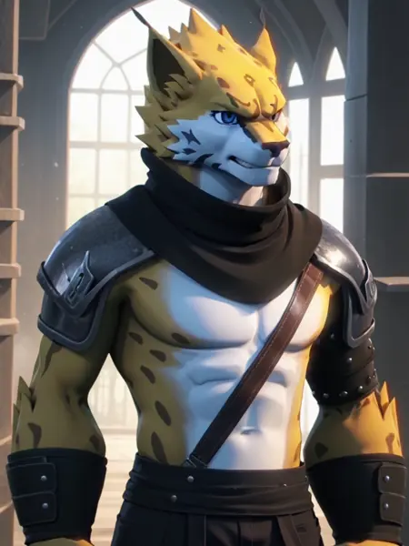 악역인 표범: liebao, 1boy, furry, shoulder_armor, shoulder_pads,