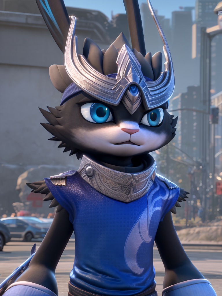 冰流:bingliu,furry,1boy, grey fur, rabbit_ears, helmet,blue shirt,sleeveless, armor,blue eyes,