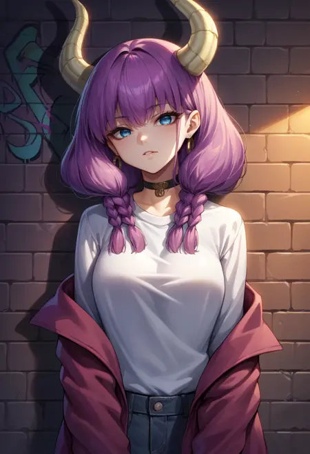 AuraFrieren, 보라색 머리, 파란 눈, 뿔, 긴 머리, 두 개의 트윈 땋은 머리