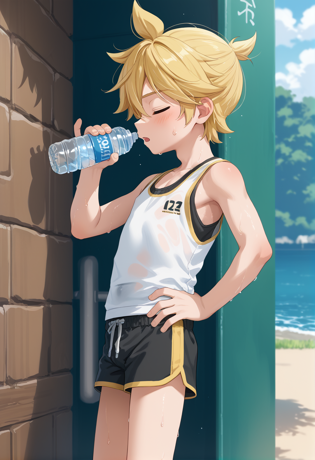 kagamine len,ahoge,blonde hair,blue eyes,