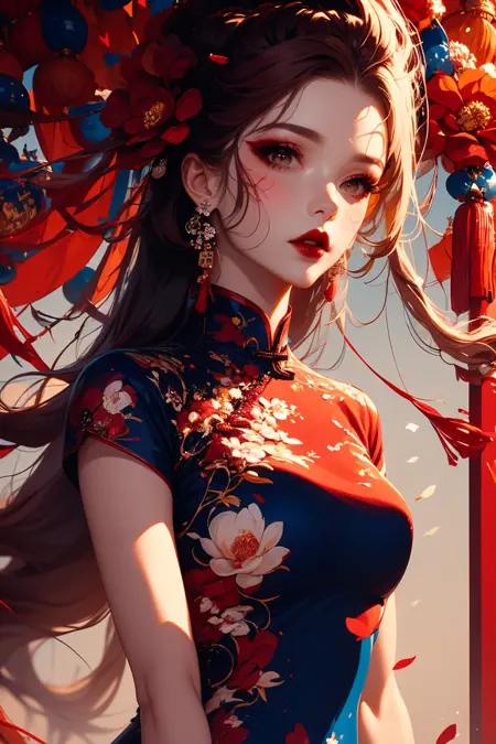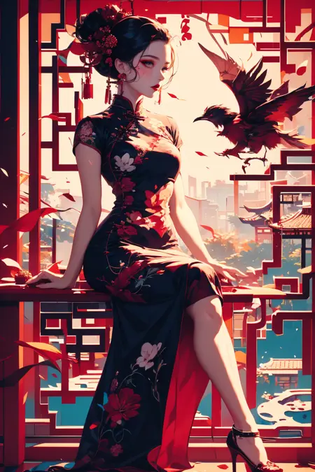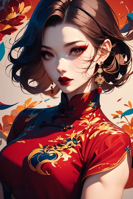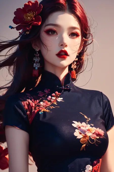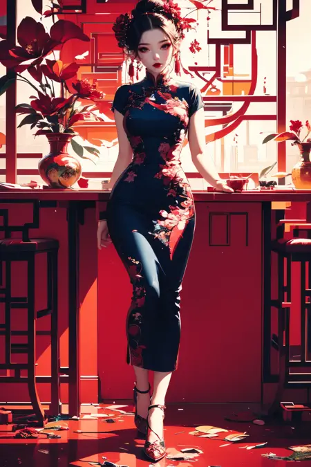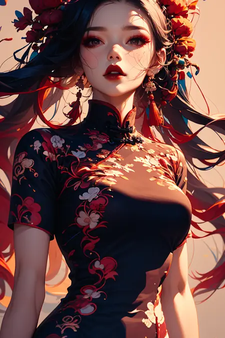 このモデルは独自のスタイルを持っており、チョンサムと絵画スタイルはより中国風です。