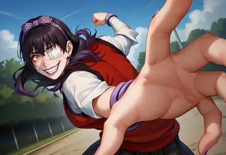 触发词 + 外貌: ikishima midari, 口红, 紫色嘴唇, 发带, 发圈, 医用眼罩