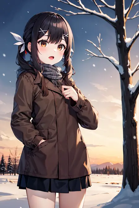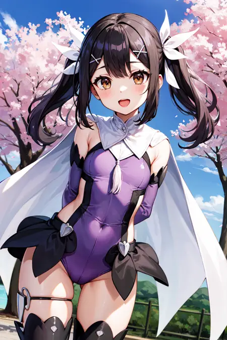 아웃핏1aamiyu, 트윈테일, 헤어리본, x 헤어 장식, 갈색 눈, 작은 가슴, 마법소녀, 흰색 망토, 보라색 레오파드, 분리된 소매, 보라색 소매, 쇼걸 치마, 허벅지 스트랩, 보라색 허벅지 양말