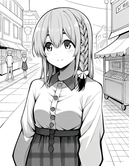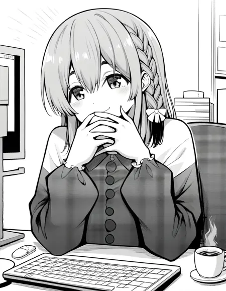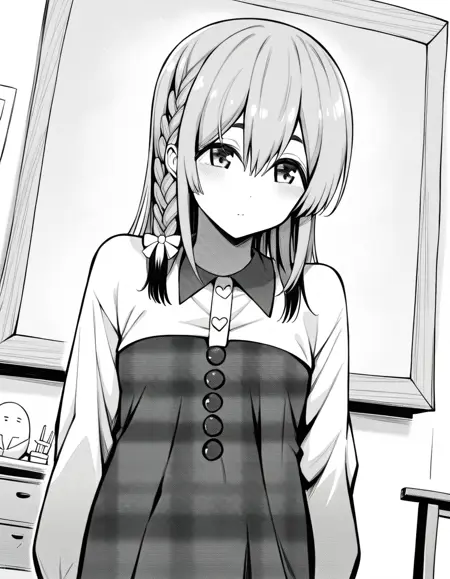 sumi sakurasawa, bangs, pink eyes, hair between eyes, pink hair, braid, hair bow, thick eyebrows,
