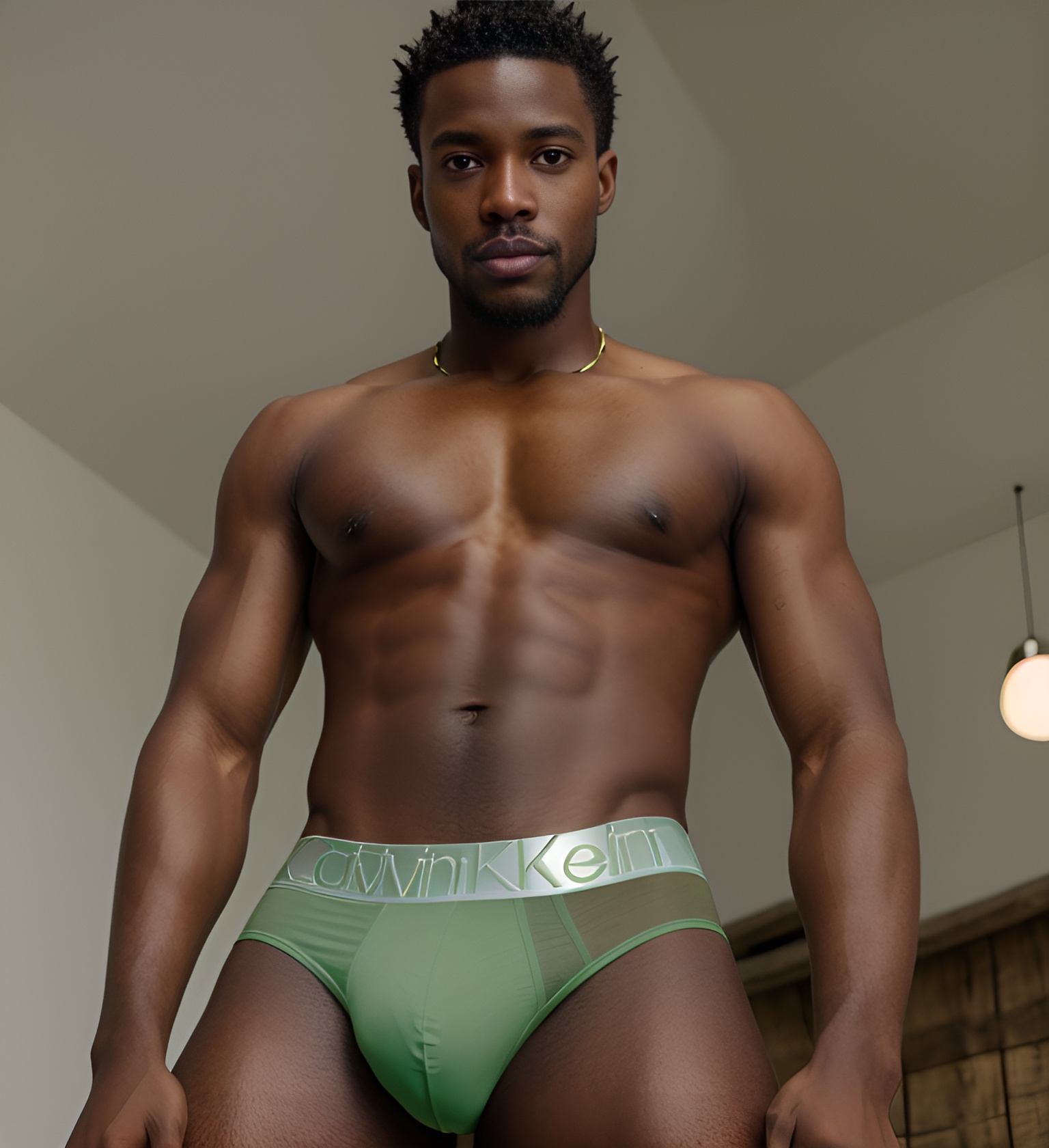 • 提示词非常简单:“一个穿着黑色 dslund 内裤的男人”,不使用写实风格,不使用超高清,也不包含其他多余描述