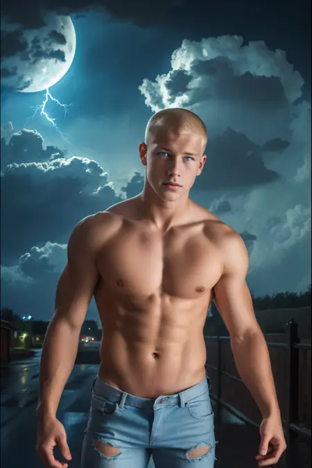 일부 이미지에서처럼 그의 머리를 밀고 싶다면, 반드시 "shaved head"라고 명시해야 합니다. 그렇지 않으면, 그의 머리카락은 일반적으로 위로 올려진 "아이비 리그" 스타일이 됩니다.