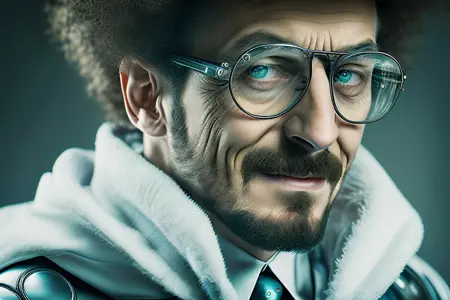 "dvMJv4 style, mad scientist, 85mm, portrait, close, up, telephoto"