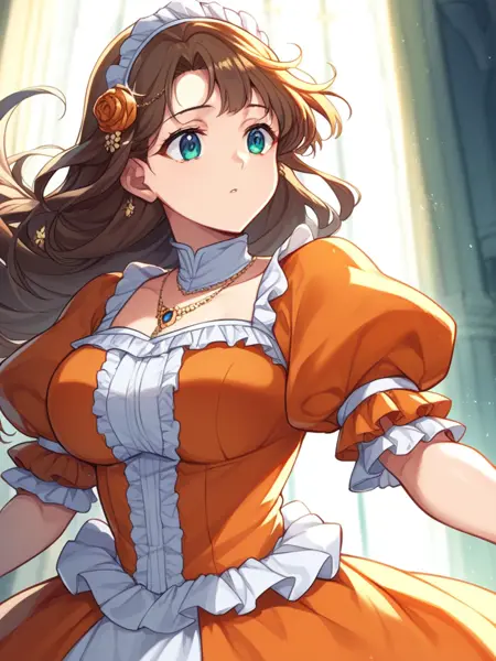 服装:荷叶边礼服、无肩带礼服、蓬松袖子、肘部手套、小披肩、皮草镶边、正中开衩等