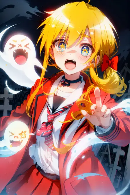 SD1.5는 작은 디테일을 처리하는 데 어려움을 겪기 때문에, 캐릭터의 고유한 동공이 왜곡되어 나올 수 있습니다. 이 문제를 해결하기 위해 그녀의 눈을 클로즈업한 이미지로 별도의 LoRA를 학습했습니다. 이 LoRA는 다른 캐릭터의 동공에도 별 모양을 인페인팅하는 데 사용할 수 있습니다. :)
